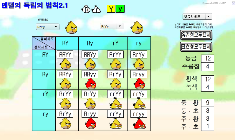 유전형 모두 표시 버튼과 표현형 모두 표시 버튼을 이용하여 한꺼번에