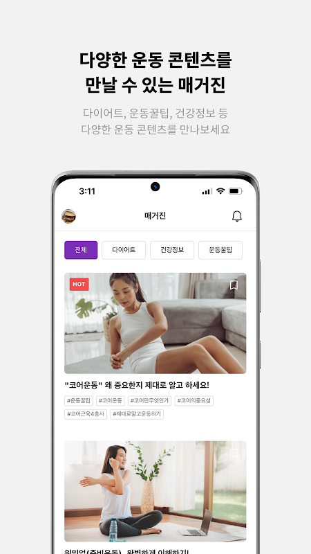 #다양한 운동 콘텐츠를 매거진에서 만나보세요