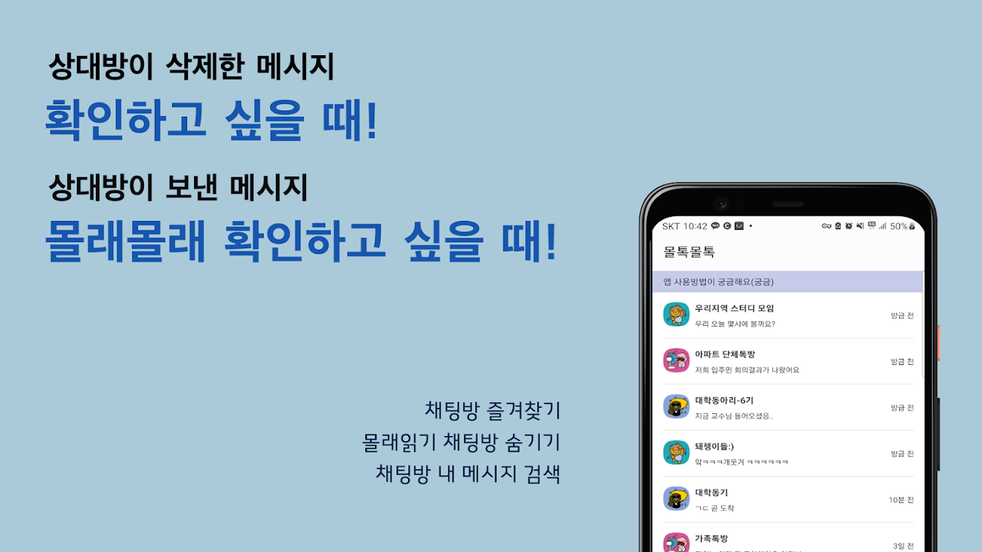 Oписание 몰톡몰톡-삭제된 메시지, 카톡 보기, 메시지 미리보기