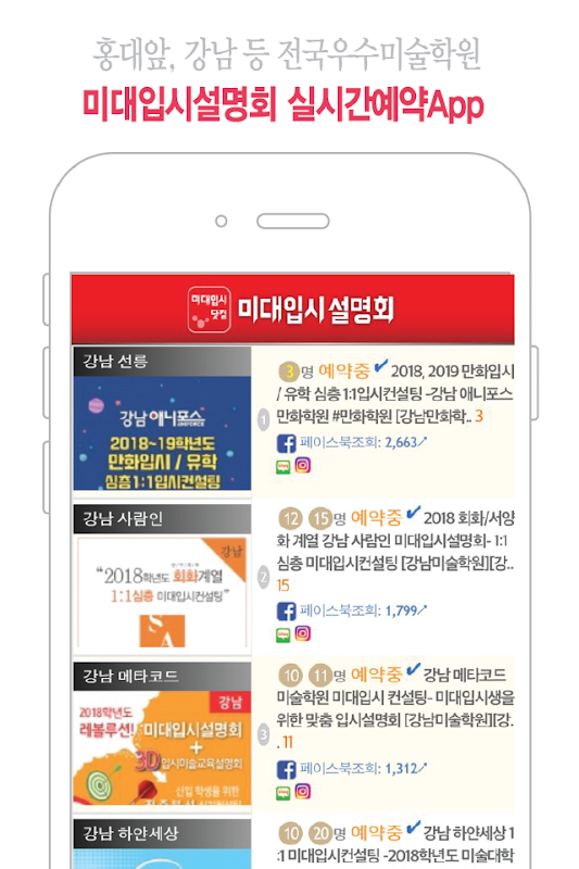 미대입시설명회 앱은 변화하는 미대입시정보와 입시지원전략을 안내해주는 미술대학 입시세미나 개최 정보를 모바일로 손쉽게 예약및 확인할수있는 앱입니다.