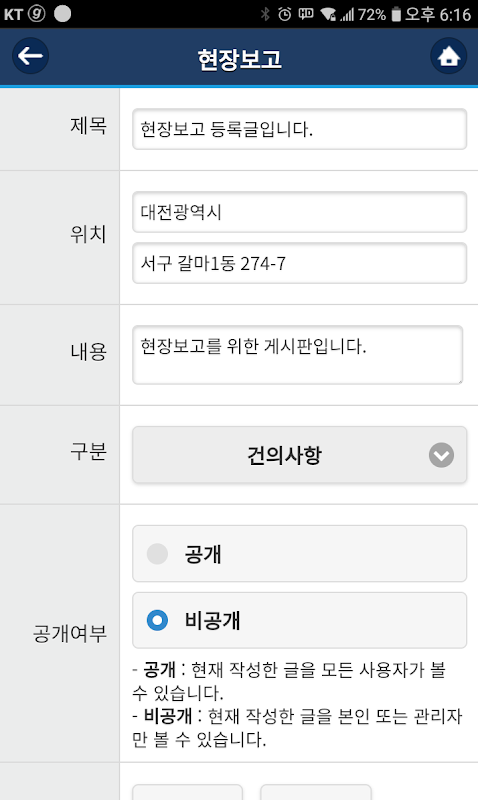 - 마을에 행사 및 소식등을 사진촬영 또는 기존의 이미지를 모바일에서 직접 전송하여 이통장님간 정보를 공유할 수 있습니다.