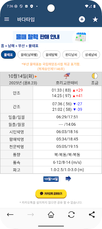 바다타임 (물때표, 조석예보, 바다날씨, 바다수온) 1.7.6