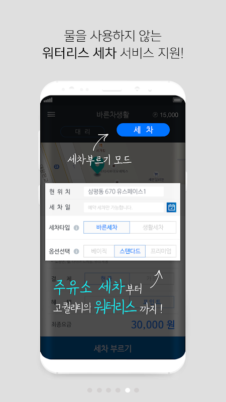 - 시간, 장소 상관없이 고객이 원하는 위치에서 세차 서비스 제공