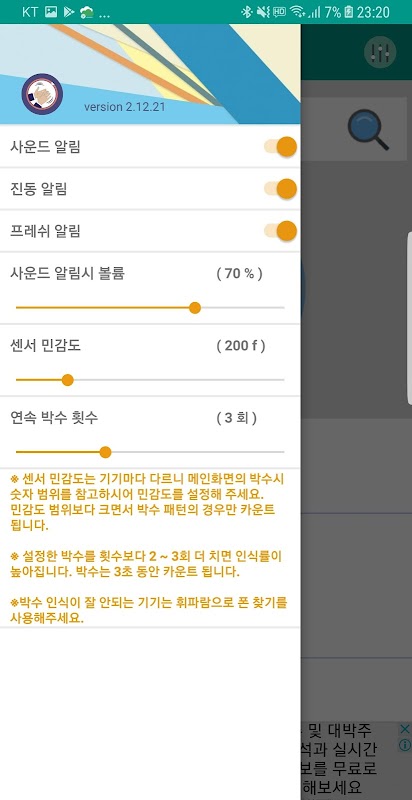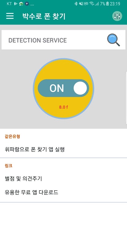 - 박수 인식이 잘 안되는 폰에서는 휘파람으로 폰 찾기 앱을 사용해 주세요.