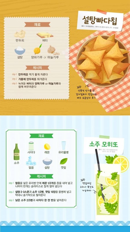 4. 요즘 뜨는 인기 요리레시피, 방송에 소개된 요리정보, 블로거들이 많이 찾는 요리정보 등을 총 망라하여 텍스트, 사진뿐 아니라 동영상으로 집에서도 손쉽게 구할 수 있는 재료만으로 누구나 손쉽게 따라할 수 있습니다.