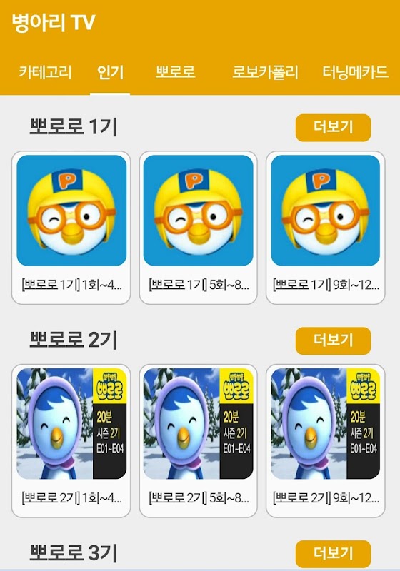 아이들이 좋아하는 무료 동영상 모음앱(뽀로로,터닝메카드,카봇,라바,코코몽,폴리포켓등)아빠의 마음으로 아이들이 좋아하는 동영상앱을 만들었습니다.