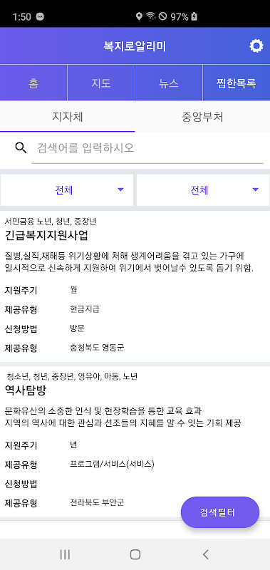 Oписание 복지로 알리미 - 보조금 정책지원금 복지멤버십