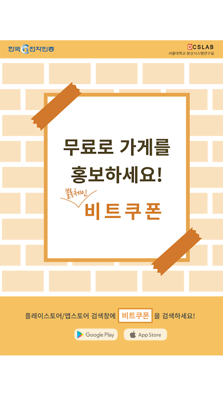 가맹점용 “비트쿠폰” 입니다.상점주 분들만 다운받아 주세요!※ 현재는 서울대학교(관악소재) 인근상점만 가입이 가능합니다.