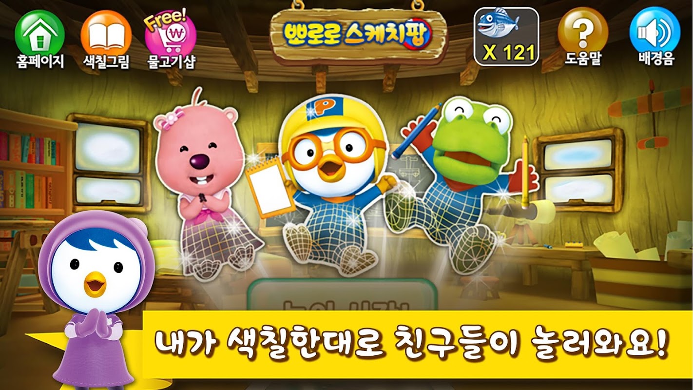 아이들은 원하는 색상을 사용하여 "뽀로로 스케치북"에 색칠을 하게되면,