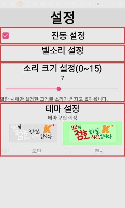 - 점호 시간에 내용 설정 -> 미리 설정된 최대 3개중 랜덤으로 바로 세팅(카톡방만 선택)