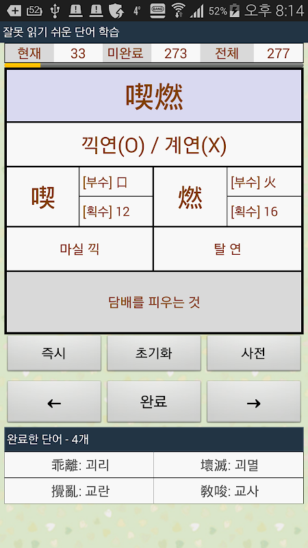 해당 급수의 한자/단어 깜박이에는 상세한 내용과 함께 유사 단어까지...