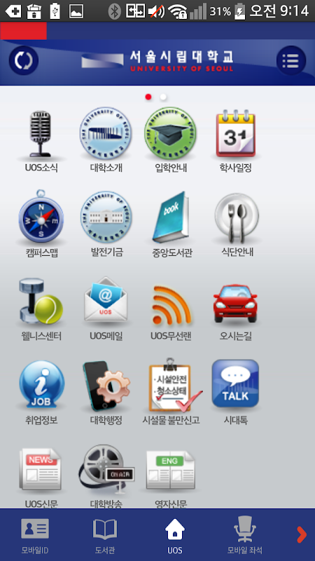 Мобильный Student ID (идентификация) экрана и использование, библиотеки, мобильные места, меню ресторана, бумажника, замена удостоверения личности, состоит из набора меню.