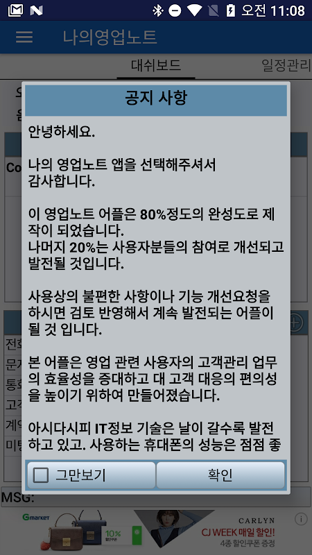일정관리, 고객관리, 고객 대응관리, 통화내역관리등을