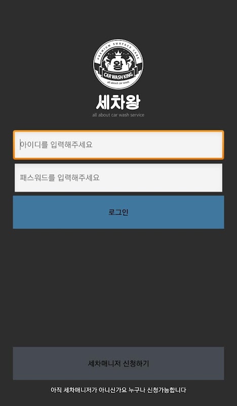 이 앱은 세차왕 매니저 분들만 사용하실 수 있습니다.