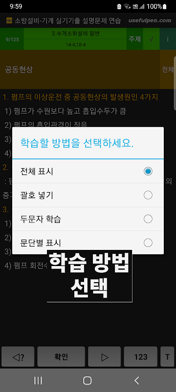 Среди практических вопросов представления для техников противопожарного оборудования (машин) включены поясняющие вопросы, требующие запоминания, и включены различные методы обучения, такие как круглые скобки, а эффекты обучения усиливаются с помощью функций пропаривания и TTS.