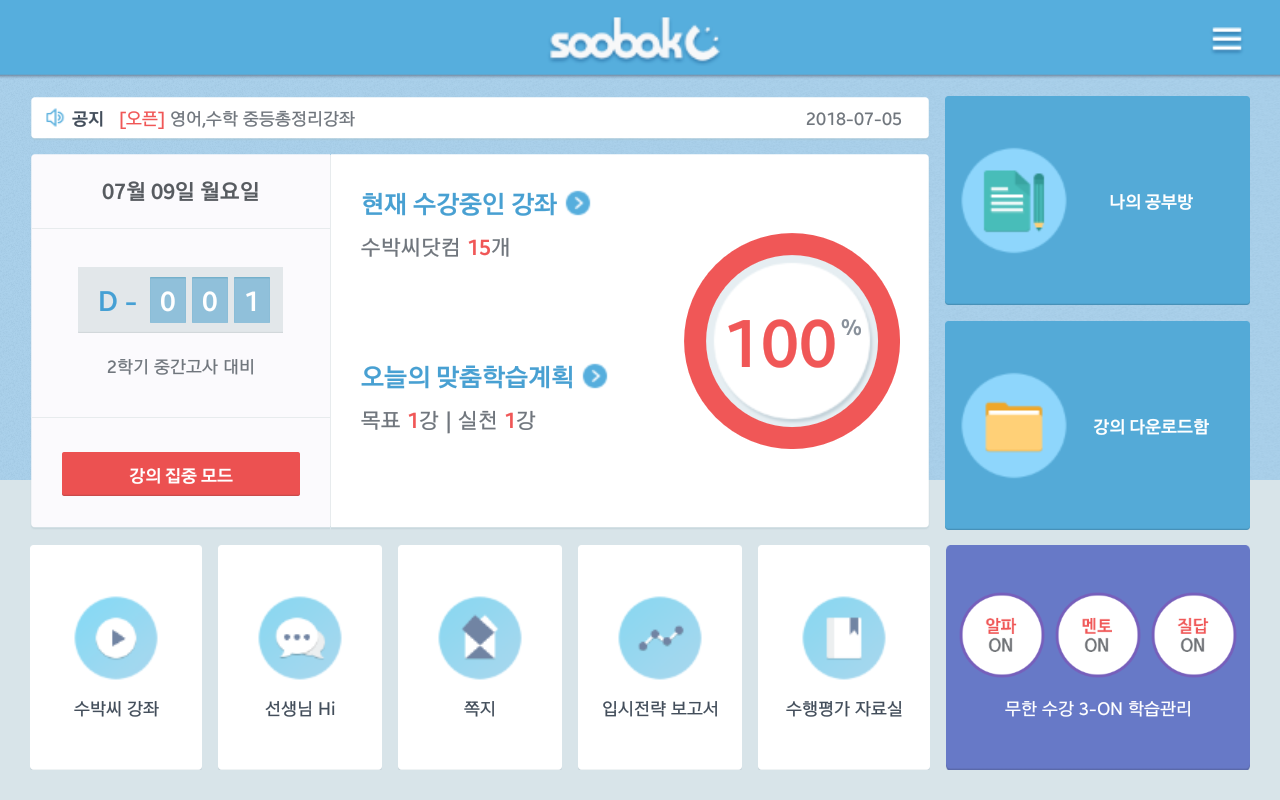 아이수박씨 초등 강좌는 물론, 수박씨닷컴 중등 강좌까지 수강이 가능합니다.