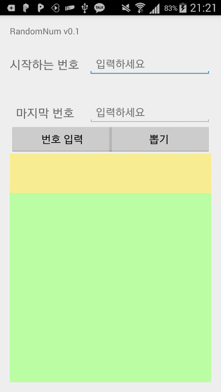 그리고 뽑기 버튼을 누르면 초록색 칸에 뽑아진 숫자를 볼 수 있습니다.