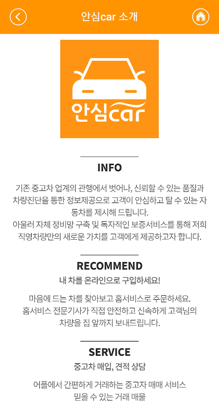 *해당 앱은 중고차 매매 업종 샘플앱으로 제작되었습니다.