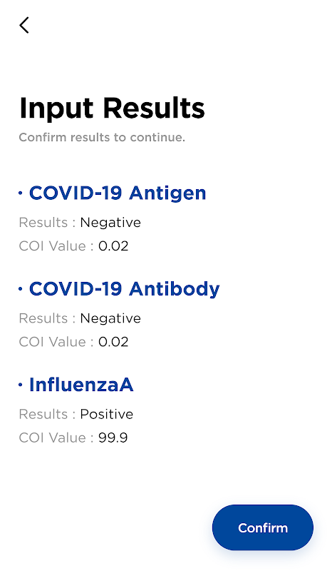 Standard Pass Professional 어플은 환자의 QR코드를 스캔하고 검사 제품의 사용방법에 따라 검사를 진행합니다. 환자의 검사 결과를 확인하면 검사 결과는 자동으로 환자의 어플리케이션에 전송됩니다. 검사한 환자 기록은 자동으로 의료진용 히스토리에 남아 환자 관리가 가능합니다.