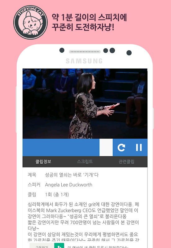 고품격 스피치로 영어 공부하자냥~ 클립을 짧게 구성했으니, 출퇴근길에 열심히 공부하자냥~ 단어, 문법 등이 자연스럽게 익혀진다옹~