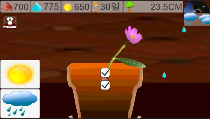 1.1 버전에서 뿌리는 하루에 10미네랄, 10수분을 제공하고, 꽃은 하루에 10미네랄, 10수분, 10햇빛을 제공합니다.