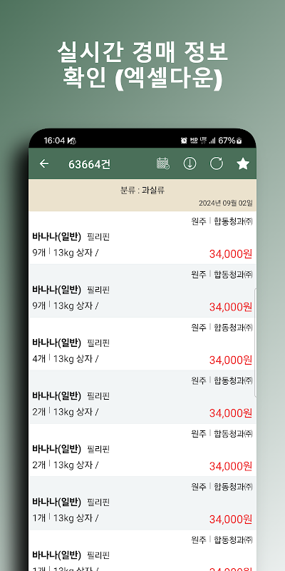 Информация 실시간 농산물 경매 - 일자별 정보 조회 APK