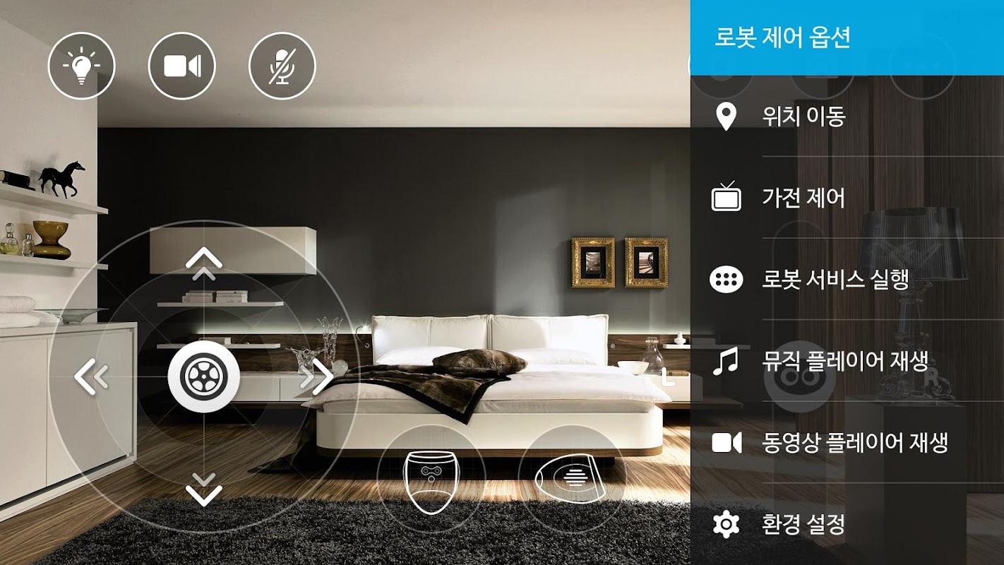 모니터링 중에 사진찍기, 녹화, 음악 재생, 영상 통화, 로봇 모션 제어 및 가전제어 등 로봇에서 동작되는 모든 기능을 동시에 수행할 수 있어 사용자가 마치 집안에서 로봇을 제어하는 듯한 느낌을 받으실 수 있습니다.