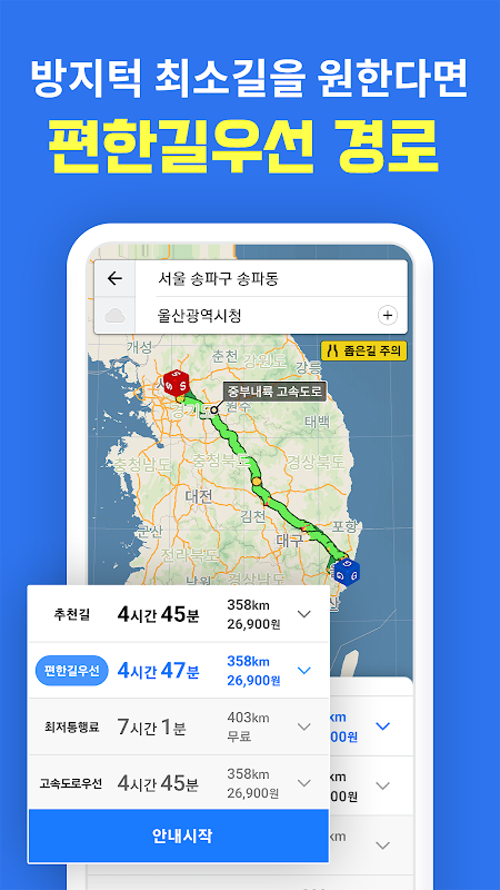 ▶ Информация о скидках на дорогах в ночное время в режиме реального времени. ▶ Управляйте своей топливной экономичностью и привычками вождения, а также получайте оценку безопасного вождения, которая позволит вам участвовать в отборе водителей грузовиков Korea Expressway Corporation.