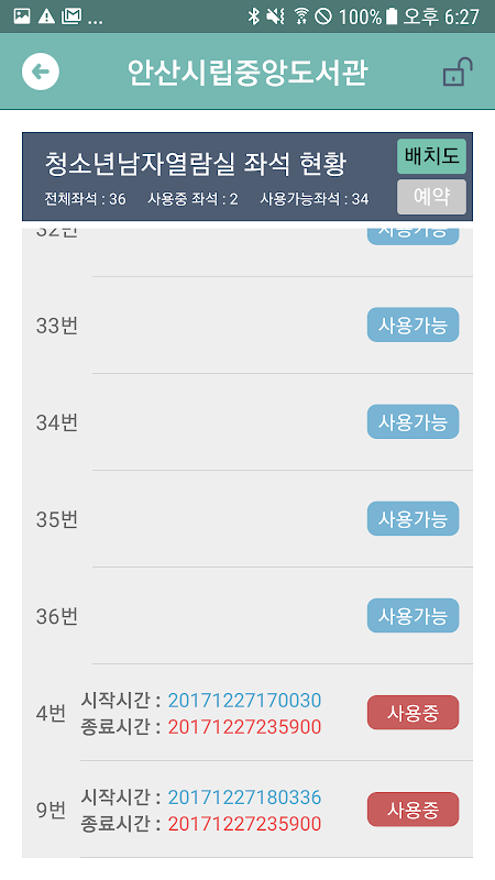 Ansan центральная библиотека службы чтения маяков с использованием службы бронирования места, приложение для предоставления услуги по защите детей.