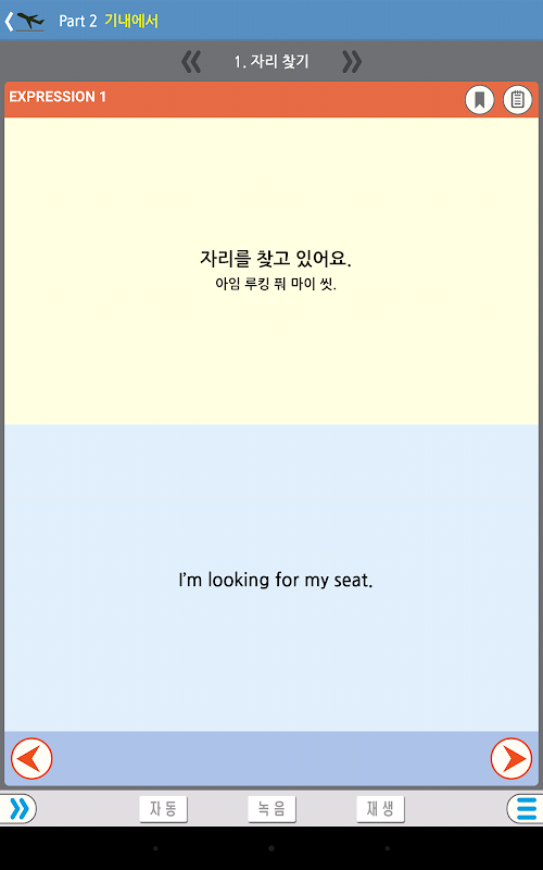 출국 및 기내 정보 / 기내 필수 표현 / 자리 찾기 / 좌석 이용