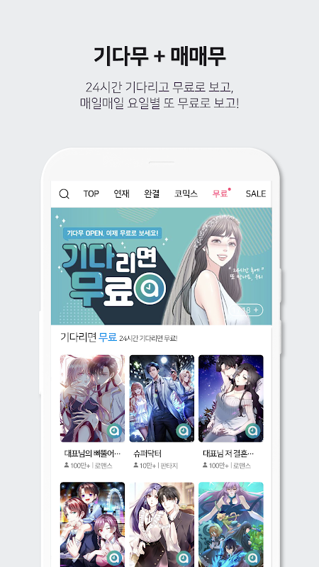 Бесплатное приложение для просмотра веб-новелл Webtoon, которым пользуются 7 миллионов участников, бесплатно, если подождете, подарок за посещение и немедленная выплата в размере 4000 вон в качестве поздравления с регистрацией.