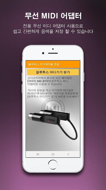 ※ 신디코리아 앱전용 무선블루투스 MIDI 어댑터는 YAMAHA MD-BT01 제품입니다.