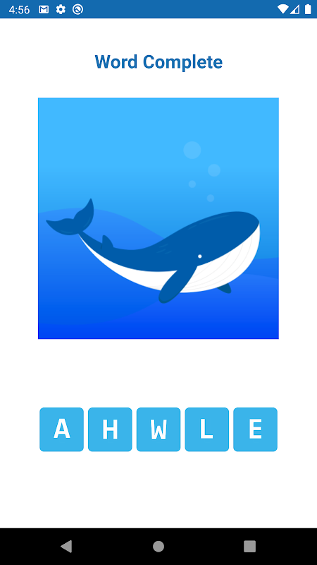 Посмотрите на картинку на экране и нажмите кнопку алфавита, чтобы угадать английское слово.