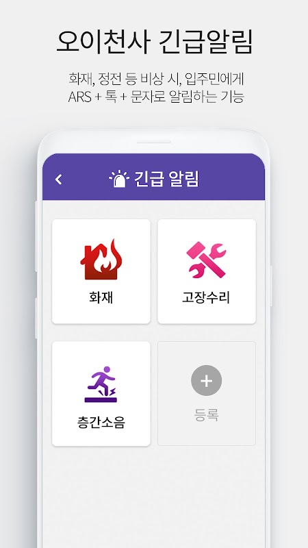 Уведомления о многоквартирных домах (осмотр лифта, уборка и т. д.) поступают на мобильный телефон путем выбора каждого дома/линии через Oi Talk или текстовое сообщение.