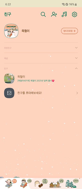 OS 정책에 따라 앱 실행 시 기존에 노출되었던 옥철이 메인화면은