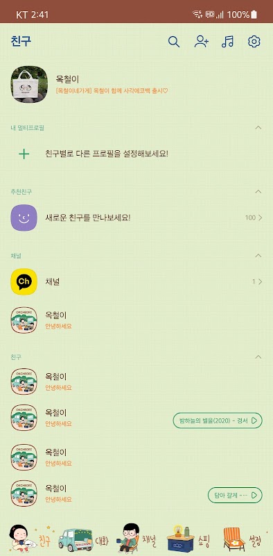 옥 철이 카카오 톡 테마 입니다 ~