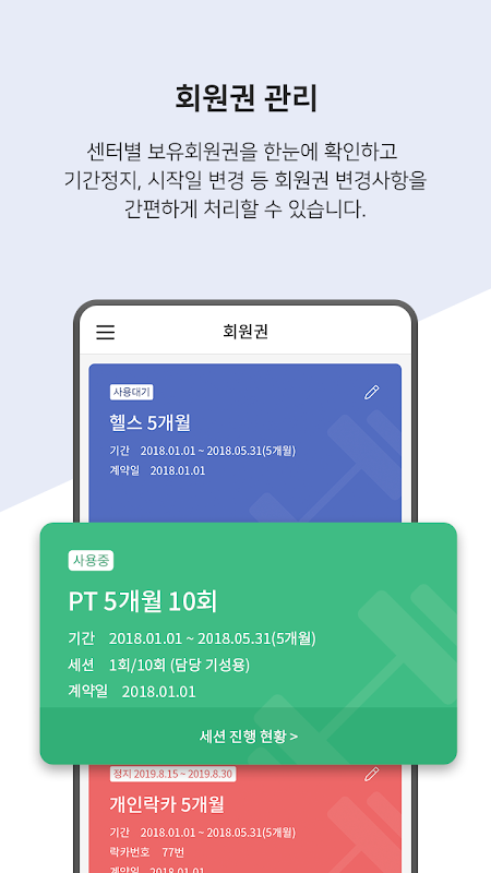 Oписание 온핏 - 스마트 피트니스, 회원권 관리, 스케줄 예약