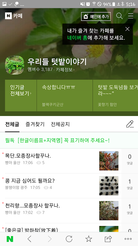 텃밭, 베란다 텃밭, 주말농장, 홈 가드닝, 수경재배, 화분 키우기, 과일나무 키우기, 허브 키우기, 채소 키우기, 씨앗 나눔, 정원 가꾸기, 실내정원, 삽목, 접목 등등 소소한 텃밭의 일상에서 느끼는 작은 기쁨을 함께 소통하고자 하는 카페입니다.
