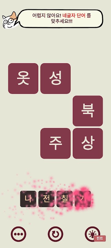 Словесная головоломка, состоящая из больших букв и простых слов на корейском языке, которой можно с комфортом заниматься путем повторного изучения в любое время!!!