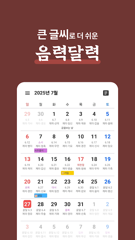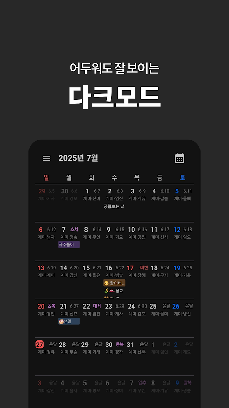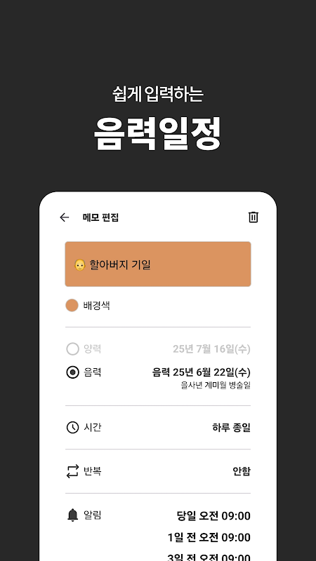 이제 음력·양력 기념일과 일정을 한 번에 관리해보세요.