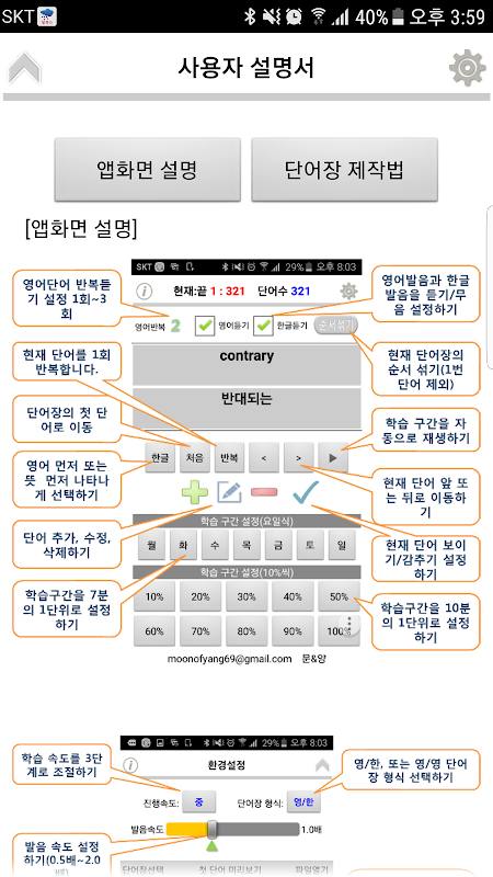 Text to Speech 기능을 활용하는 영한단어장입니다. 영어/한글 듣는 순서 선택, 듣기반복횟수 지정, 개발자 단어장 불러와 쓸 수 있음.