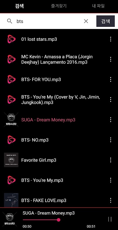 즐겨찾기 및 내가 가지고 있는 음악을 재생할 수 있어요!!!