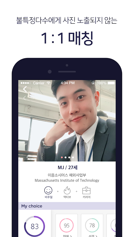 매일 낮 12시30분에 소개팅 상대의 프로필이 도착합니다.