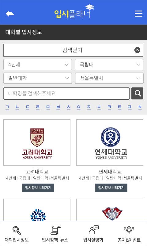 Единственный планировщик приема в Корее, который используют 1,5 миллиона кандидатов, родителей и учителей