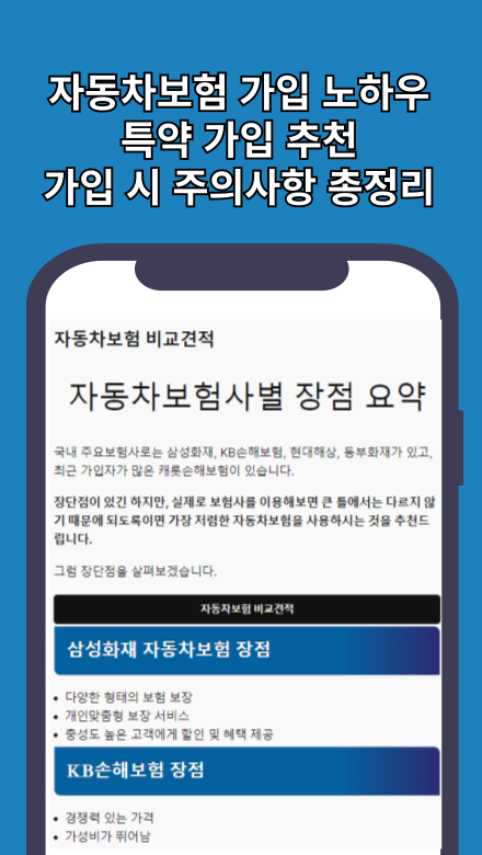 Oписание 자동차보험료 비교 오토다이렉트
