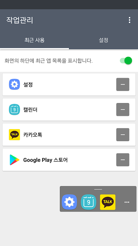 Oписание 작업관리 - 최근 사용한 앱 목록 관리, 작업관리자,