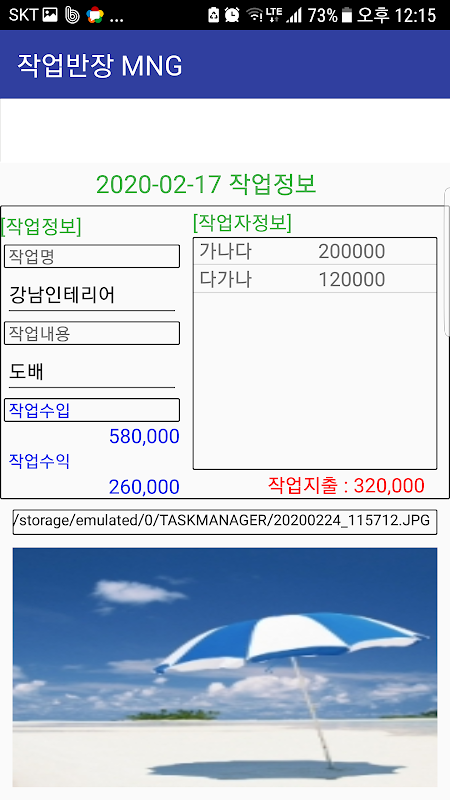 Информация 작업반장(관리자) – 작업내용/사진/수익/인건비 통계 APK