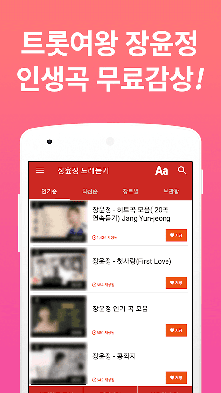 트로트 여왕 장윤정의 인기곡, 최신곡, 메들리 그리고 방송 영상, 최신 공연 영상까지 한번에 들어보세요.