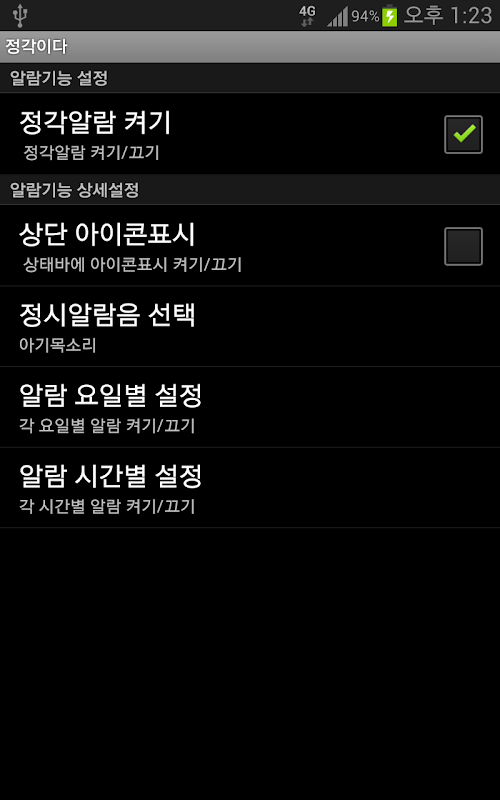 2. 정각 알림을들려주며 요일별/시간별 세부설정으로 꼭 필요한
