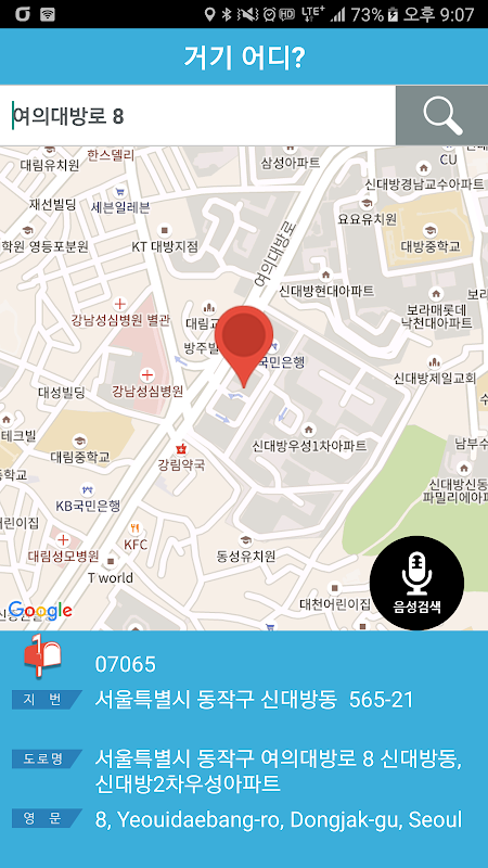 아주 쉽게 음성으로 위치 찾기, 구주소, 신주소 정보에 영문주소, 신 우편번호까지 최근 가장 가까운 지하철역을 찾아주는 기능을 추가했어요!